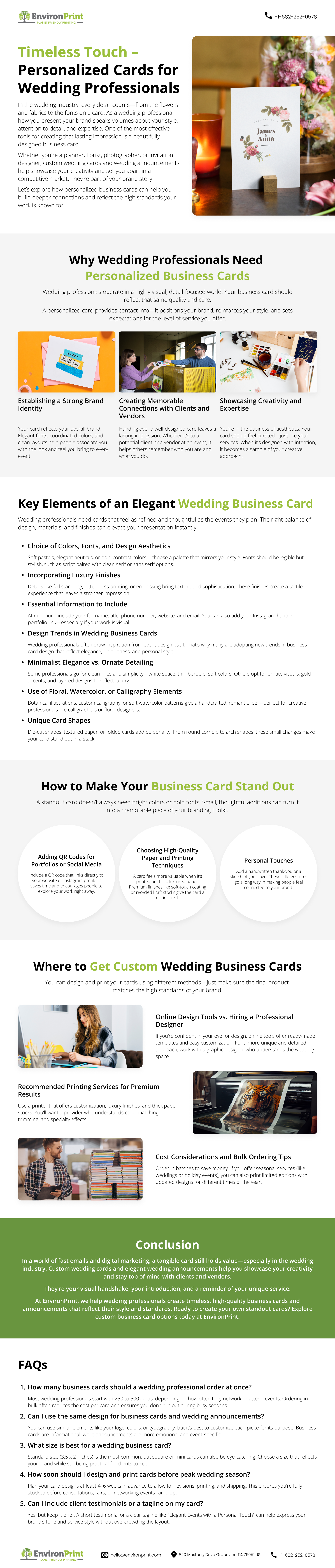 At EnvironPrint, we help wedding professionals create timeless, high-quality business cards and announcements that reflect their style and standards. Ready to create your own standout cards? Explore custom business card options today at EnvironPrint.